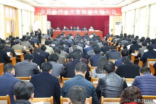2月20日上午,全县经济工作暨脱贫攻坚大会在县委大会议室召开。会议传达贯彻了中央、省委、市委经济工作、农村工作会议和全国、全省扶贫开发工作会议和市委农村工作暨脱贫攻坚大会精神,全面总结2016年全县各项工作,兑现2016年度综合目标管理责任书,深入分析当前形势,安排部署2017年全县各项重点工作。县委书记党建中出席会议并讲话,他强调,全县各级各部门要按照中央和省、市委的部署要求,坚持抓主抓重,发挥特色优势,推动全县经济工作再上新台阶。全县上下要以新的理念统一思想、以新的目标凝聚力量、以新的举措攻坚克难,全面打赢脱贫攻坚战。