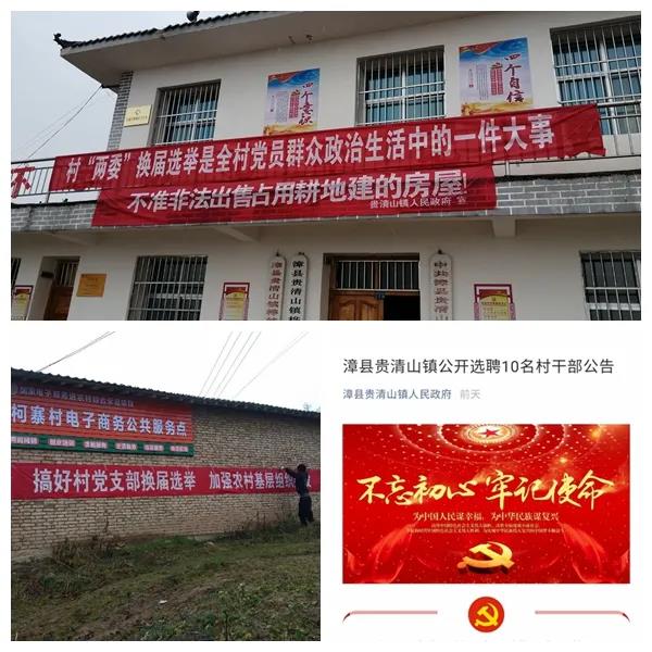 政策宣传,营造氛围。一是加大线下宣传力度。充分利用横幅标语、新时代文明实践宣讲活动、“小喇叭”广播等载体,加大换届宣传力度,提升群众的知晓率和参与率。二是加大线下宣传力度。依托“学习强国”APP、支部微信群、QQ等网络加强换届政策法规学习,及时转发《致全市村(社区)广大党员群众的一封信》,进一步扩大群众知晓率和参与率。同时,发布招考公告,公开招聘10名村干部。