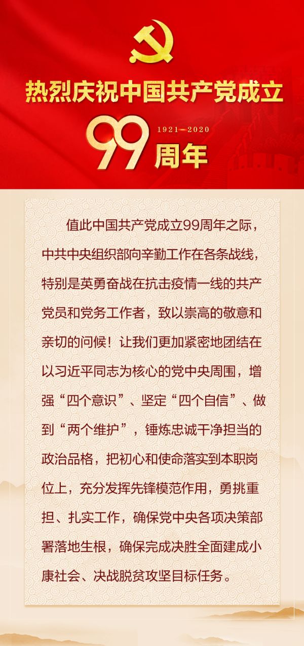 中共中央组织部向全国共产党员和党务工作者致以节日祝贺