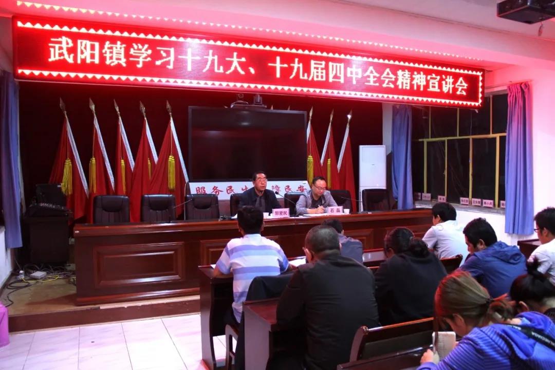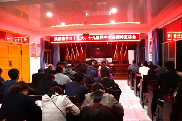 9月9日晚上,武阳镇召开党的十九大、十九届四中全会精神宣讲会,会议邀请了县直机关离退休党总支书记郭爱民同志做宣讲报告。全镇干部,各村(社区)党组织书记,各站所、中心负责人,共计70多人参加并聆听了报告。会议由镇党委副书记、政府镇长石磊同志主持。