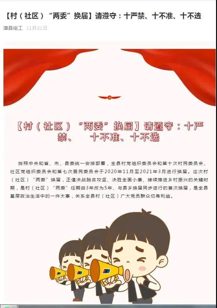 自开展村(社区)“两委”换届选举工作以来,漳县坚持高起点谋划、高标准要求、高质量推进、精心组织、周密部署、突出重点和分类施策,稳步推进村(社区)“两委”换届选举工作。