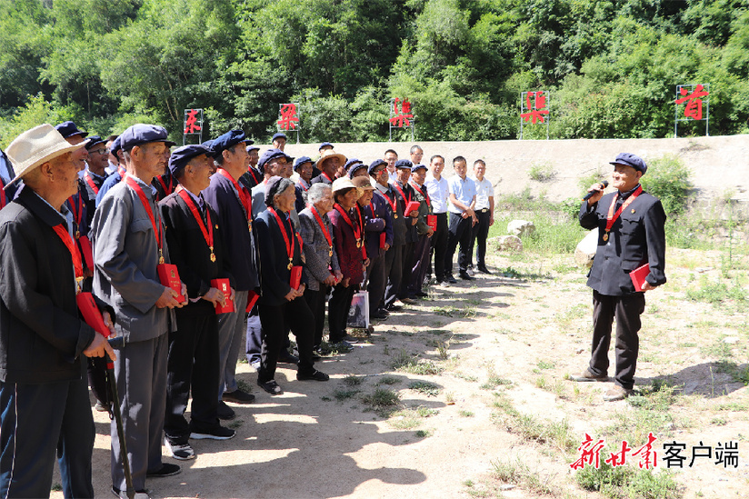 天水市温泉镇组织光荣在党50年的老党员接受党性教育。
