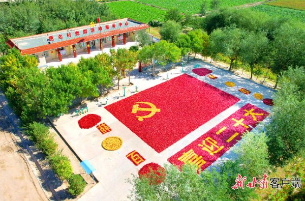 民勤县薛百镇更名村一派丰收景象,党员干部群众喜迎党的二十大。